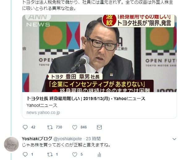こんな背景がトヨタの社長さんのコメントにも表れているかと思います。