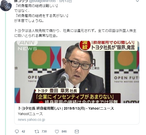 トヨタより 終身雇用崩壊のお知らせ!