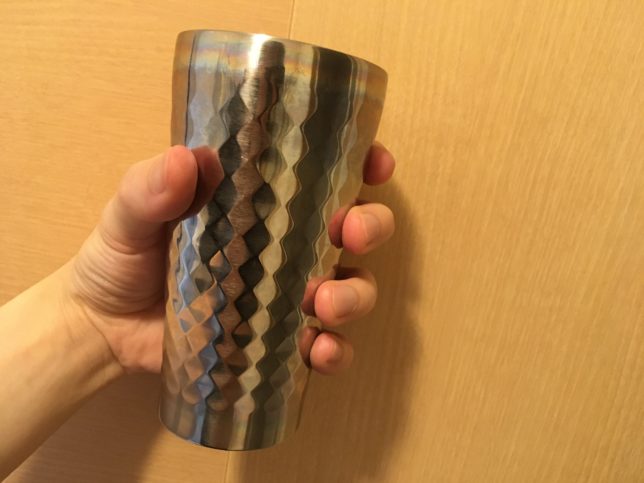 まず、このタンブラーはシルバーでゴツい見た目なので、決して可愛くはないです。