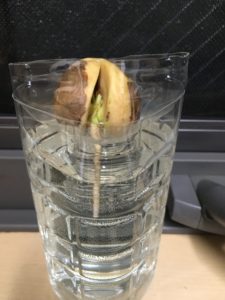 とんがっている方から種が割れて芽が出て、丸まった方からは根っこが出ます。