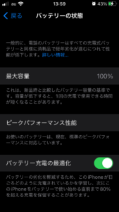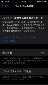 Iphoneのバッテリーの状態を確認するとこんな感じでした。